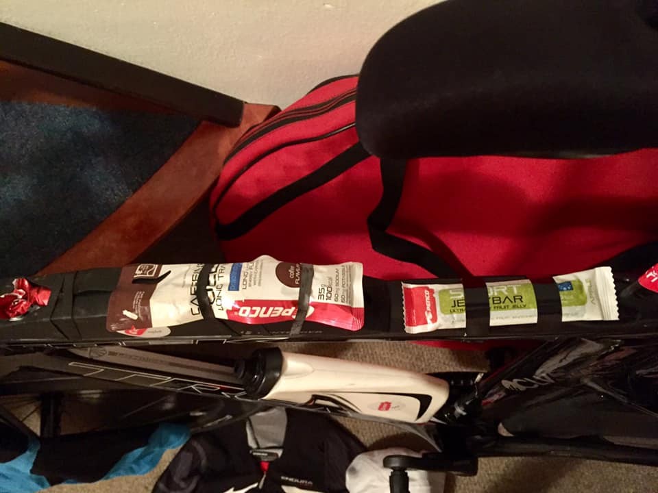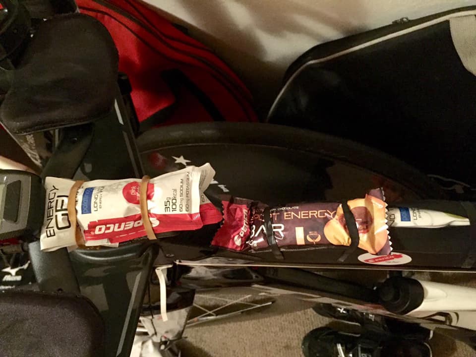 Na cyklistiku si vždy beru 1x long snack, 1x čoko energy tyčku, 2x Jelly bar, 7x gel, 1x toast :), Colu, někdy banán či iont. Tyčky a gely střídám. V druhé polovině kola upřednostňuji již Jelly barky a gely.