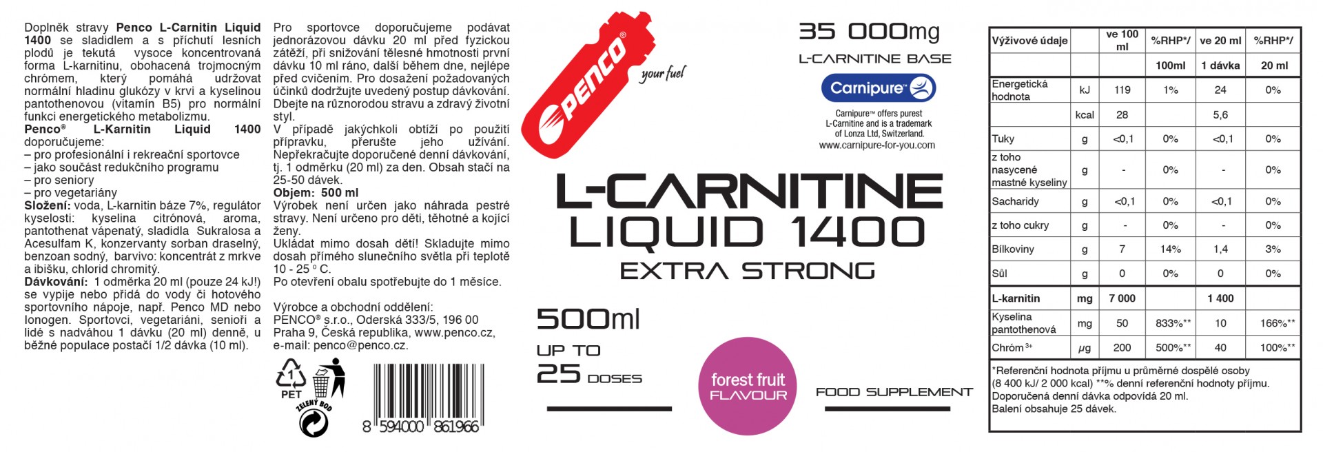 Účinná dávka Penco® L-CARNITINE LIQUID: