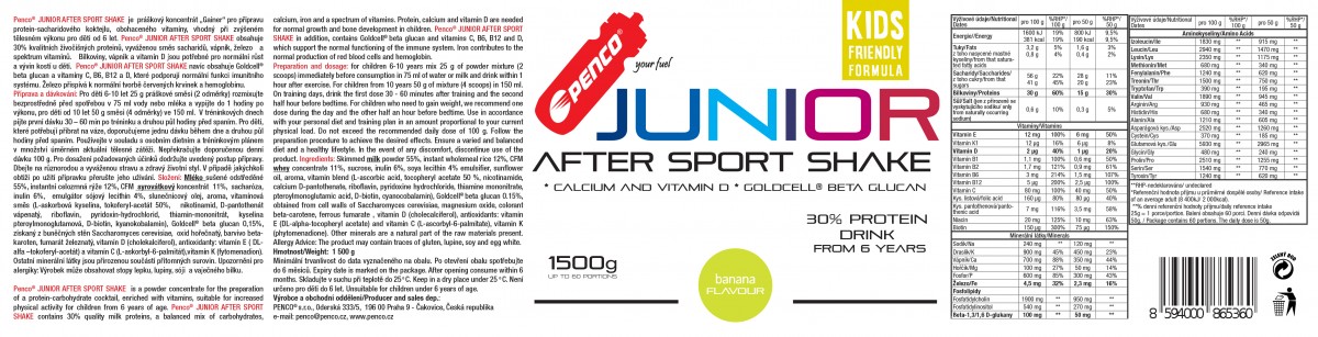 Receptura byla navržena tak, aby pomáhala vytvářet optimální podmínky pro budování zdravé svalové hmoty mladého sportovce a udržení optimální tělesné hmotnosti v návaznosti na náročný trénink. Koktejl Penco® JUNIOR AFTER SPORT SHAKE doporučujeme jako vhodnou součást regenerace (zotavení ) po výkonu pro děti a juniory nebo pro děti, které trpí podváhou jako druhou večeře. Velmi chutný koktejl Penco® JUNIOR AFTER SPORT SHAKE může sloužit i jako náhrada snídaně pokud Vaše dítě nerado snídá nebo jako rychlá, ale nutričně vyvážená svačina v případě časově náročného dne.